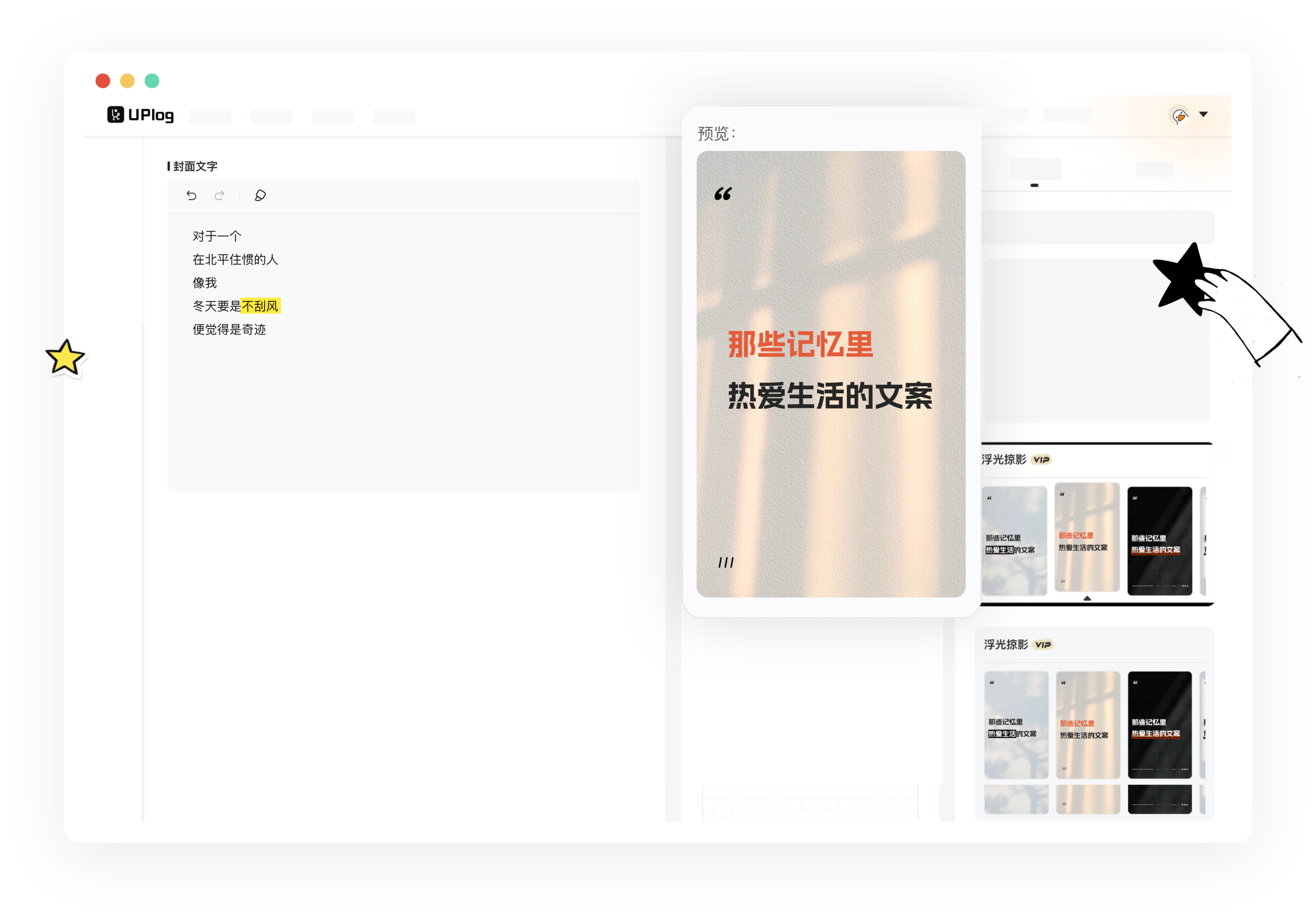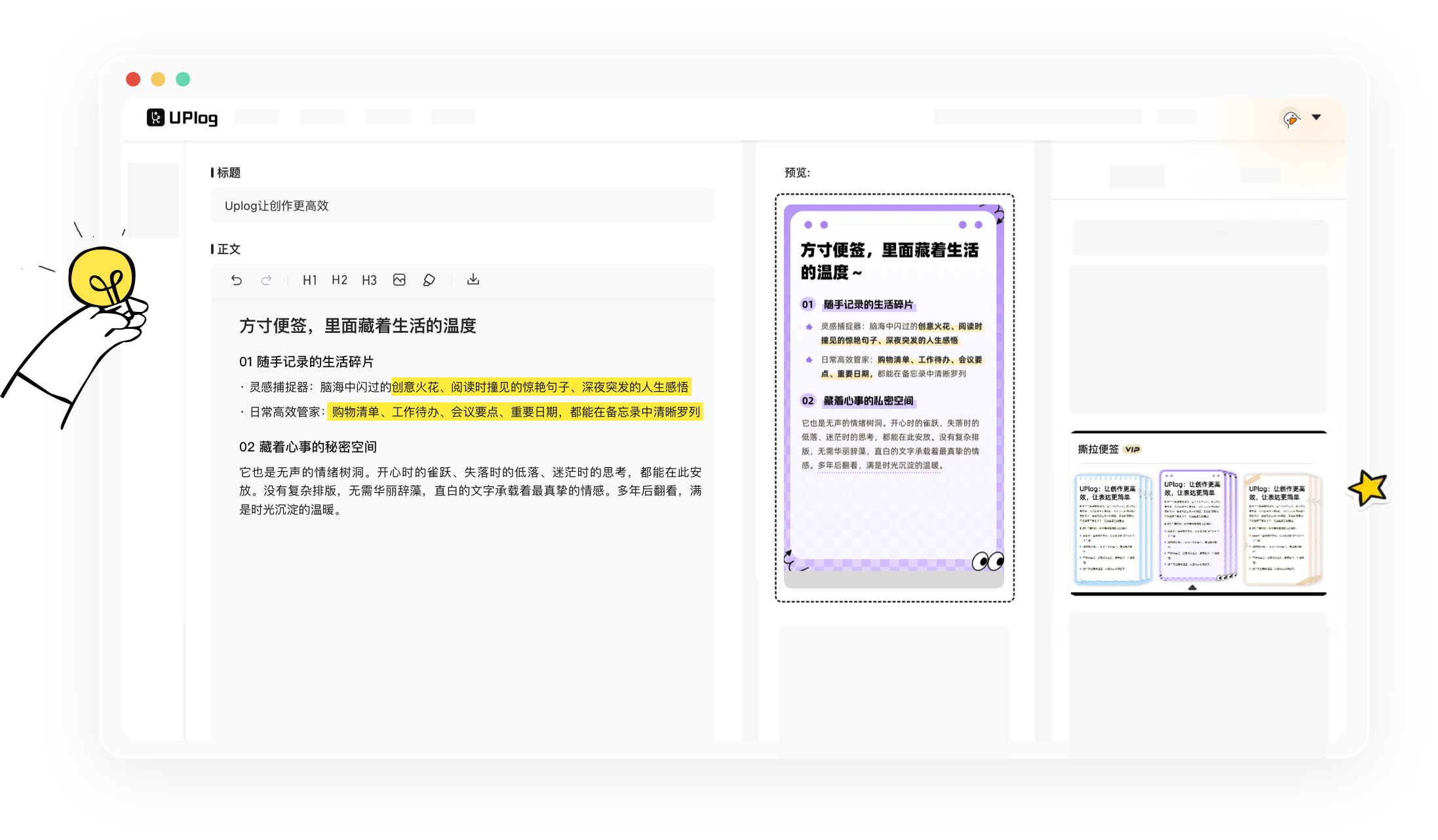 UPlog让创作过程更轻盈,减少阻力,让你顺着状态完成想表达的内容